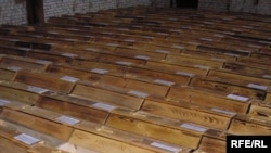Велике приміщення приміського складу цілковито заповнене маленькими домовинами, в яких складені людські кістки. Протягом чотирьох років судмедексперти разом зі студентами Львівського медуніверситету розбирали всі останки, складали їх за статями.