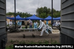 У травні Росія передала Україні понад шість тисяч тіл загиблих військових. Кожне тіло проходить довгу процедуру ідентифікації. Від вагона-рефрижератора до повернення в сім’ю – це важка процедура. Радіо Свобода бачило лише малу її частину.